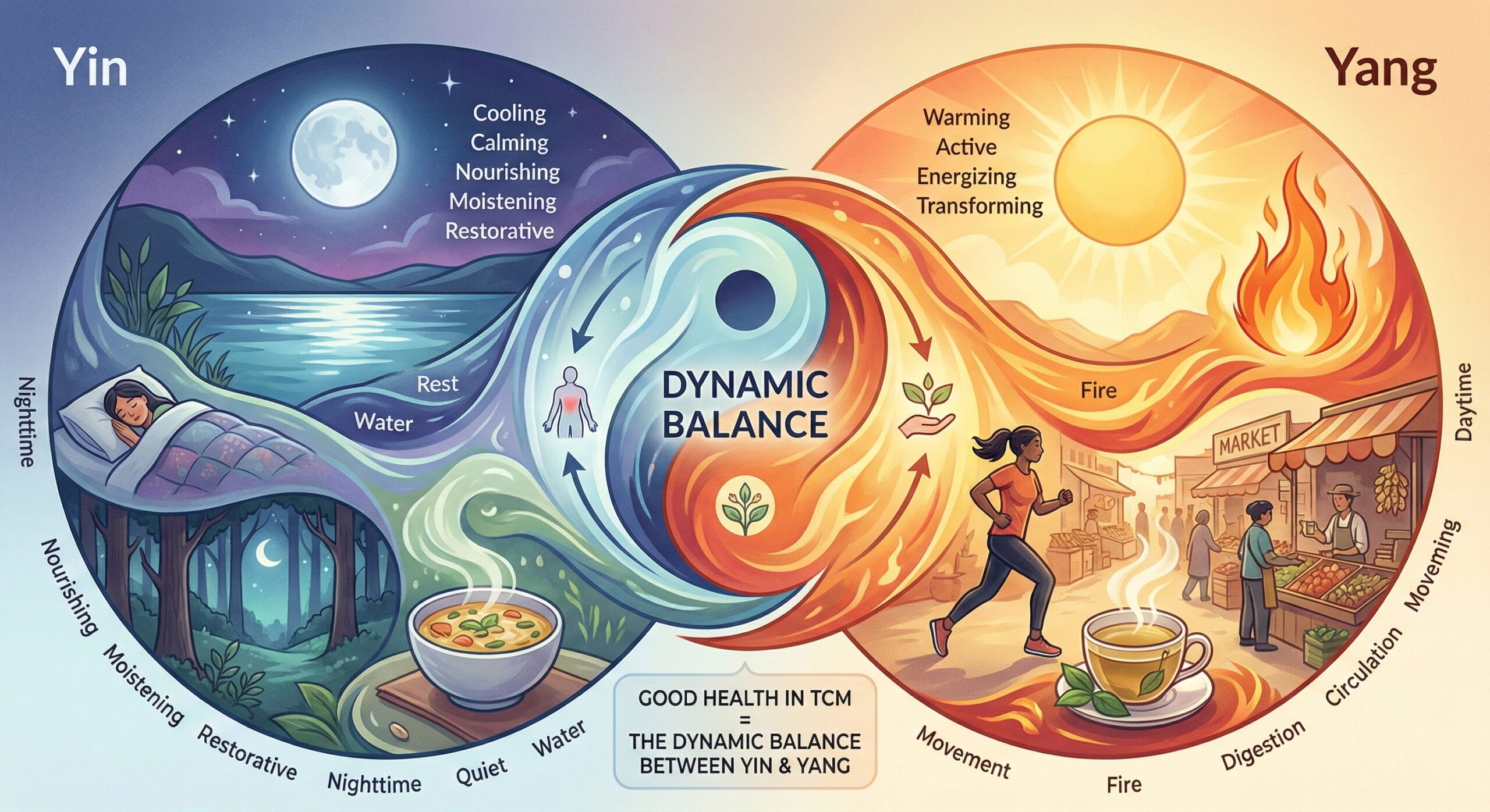 In TCM, yin and yang describe two complementary forces that exist in everything—your body, nature, the seasons, and your emotional life. They aren’t opposites fighting each other; rather, they work together in a dynamic partnership.