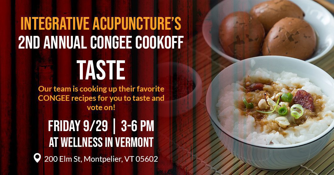Integrative Acupuncture has hosted an annual celebration on National Acupuncture Day since 2012. On 10/23/14, we had over 80 attendees having group acupuncture, learning Tai Chi, receiving massage, eating snacks, and drinking tea. The next year on 10/22/15 we hosted another great event at our office and on the first floor at Integrative Family Medicine, Montpelier, of the University of Vermont Health Network, Central Vermont Medical Center. We had over 100 people attend and included live music and food this year. We’ve continued the tradition, and in 2022 we turned our event into an annual Congee Cookoff! Six members of our team cooked their own congee recipes for participants to try and vote on. Look out for our 2024 Congee Cookoff!
