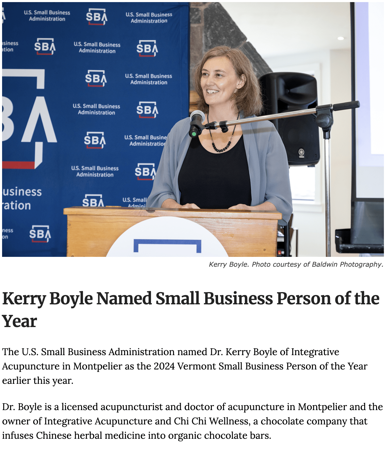 Katie Moritz of The World wrote an article on Kerry Boyle’s involvement in the political action of the Vermont Acupuncture Association to try to increase access to acupuncture for all Vermonters for pain management. In an effort to reduce dependency on opiates, Kerry argues, acupuncture should be a mandated covered treatment option by insurance companies.