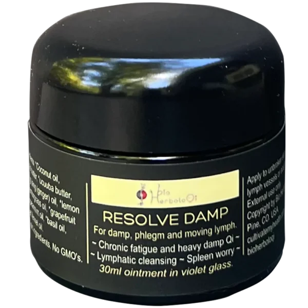 Resolve Damp, Phlegm and Move Lymph is a balm for assisting the body to resolve damp, and transform phlegm via the Tai Yin channels and lymphatic system. The formula consists of premium herbal oils and C02 extracts that help to move the lymphatic fluids and decongest damp or phlegm. It is also good for harmonizing Earth Qi when invaded by Wood Qi, causing an overthinking type of anxiety.